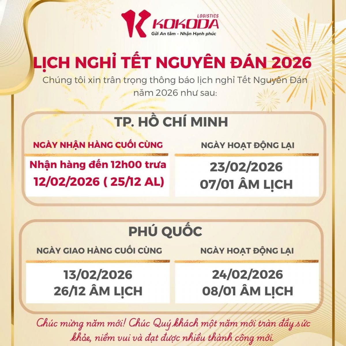 KOKODA THÔNG BÁO LỊCH NGHỈ TẾT NGUYÊN ĐÁN BÍNH NGỌ 2026